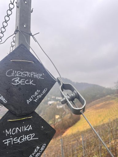Neben den internen Themen liegt ein großer Schwerpunkt auf der Arbeit in den Weinbergen. Nahezu jeden Mittwoch – und manchmal zusätzlich an Samstagen – finden Arbeitseinsätze statt, die organisiert und begleitet werden müssen. Ebenso wichtig ist der Vertrieb unserer Weine: Hier planen wir, welche Veranstaltungen wir besuchen, wer uns dort vertritt und welche neuen Regionen sich für unseren Absatz erschließen lassen.