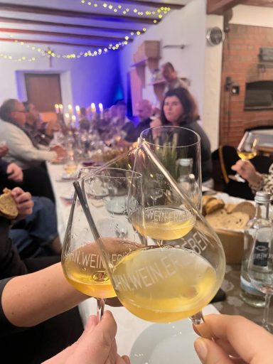 Unter dem Motto „Jeder Wein ist es wert, getrunken zu werden“ feierten wir fünf Jahre Weinleidenschaft. Zu diesem besonderen Anlass probierten wir alle unsere Weine der vergangenen Jahrgänge. Zu jedem Jahrgang gab es ein kleines, liebevoll selbst zubereitetes Gericht oder einen Snack – ein kulinarischer Genuss, der perfekt zu den Weinen passte.