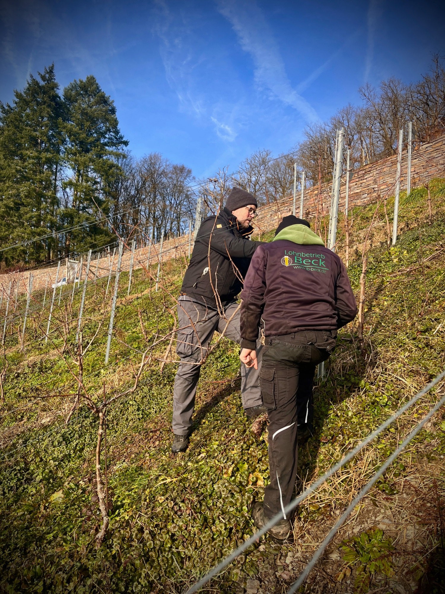 Aktuell häufen sich die Ereignisse in unseren Weinbergen. Wir sind sehr froh, dass Christopher Beck (Lohnbetrieb Beck - Weinähr) mit seinem Team unseren lang ersehnten Zick-Zack-Weg fertig stellen konnte.